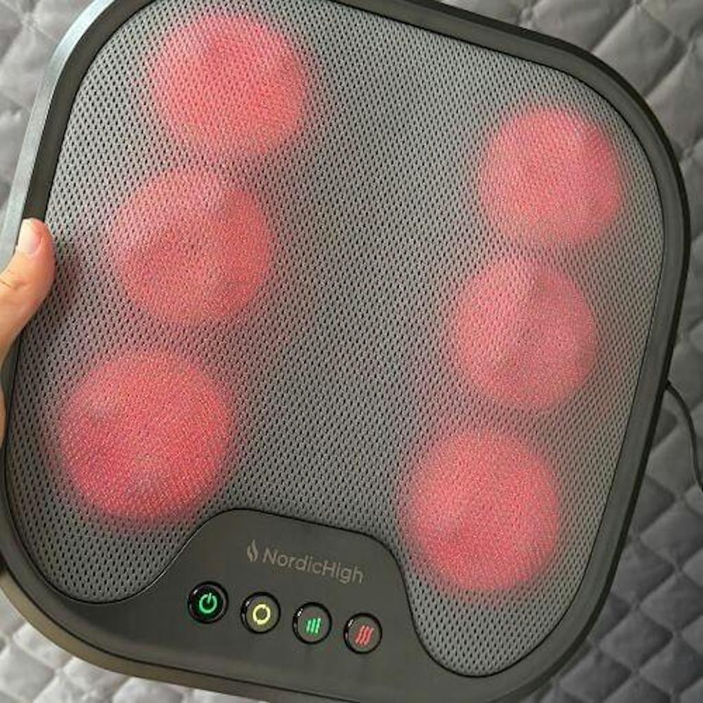 Den er udstyret med 18 roterende gelknuder og 6 fleksible massagehoveder, som tilpasser sig dine fodkurver og giver en naturlig, blid og dybdegående shiatsu-massage. Samtidig sørger varmen for at løsne spændinger og stimulere blodcirkulationen – helt uden ubehag.